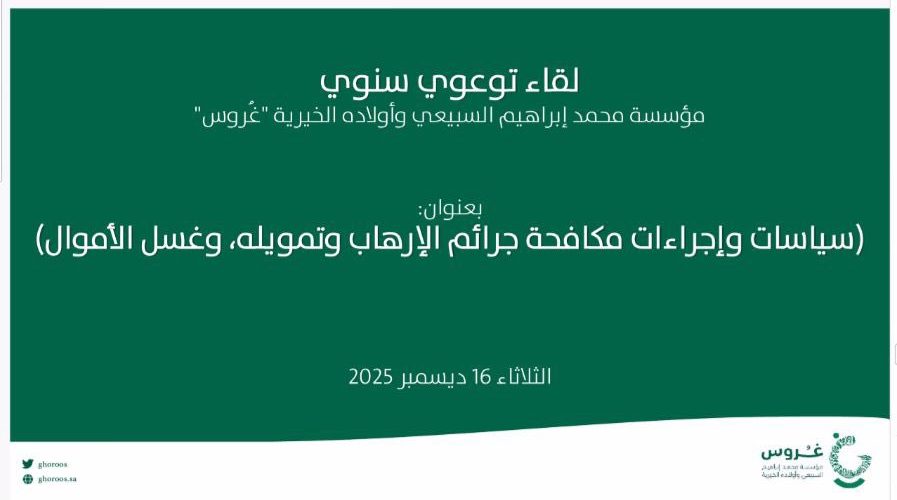 أقامت مؤسسة غُروس الخيرية اليوم الثلاثاء (16 ديسمبر 2025م) لقاءً توعوياً بعنوان: (سياسات وإجراءات مكافحة جرائم الإرهاب وتمويله، وغسل ... Read More